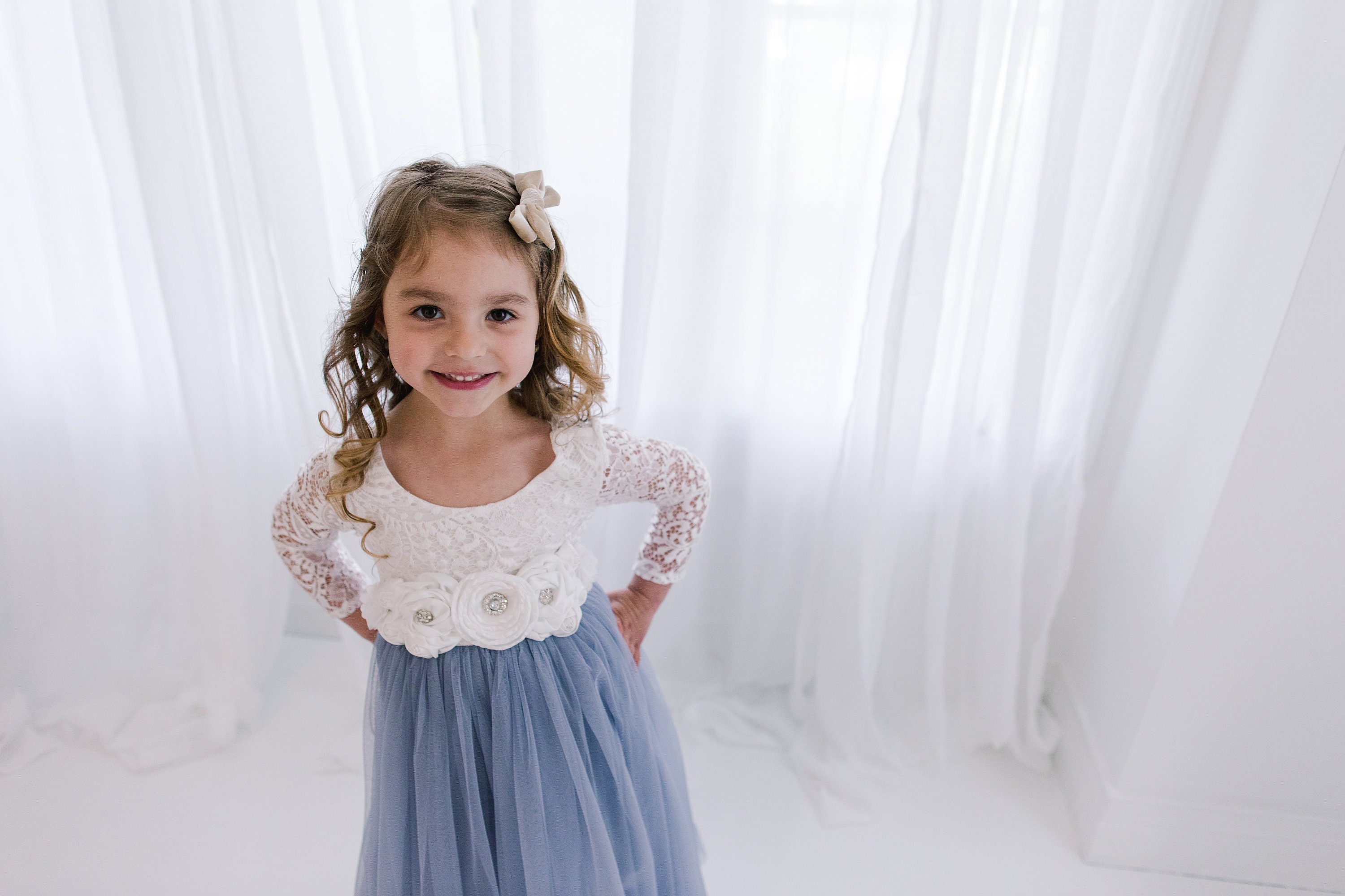Flower girl topskirt Dusty blue flower girl dress Blue flower Etsy