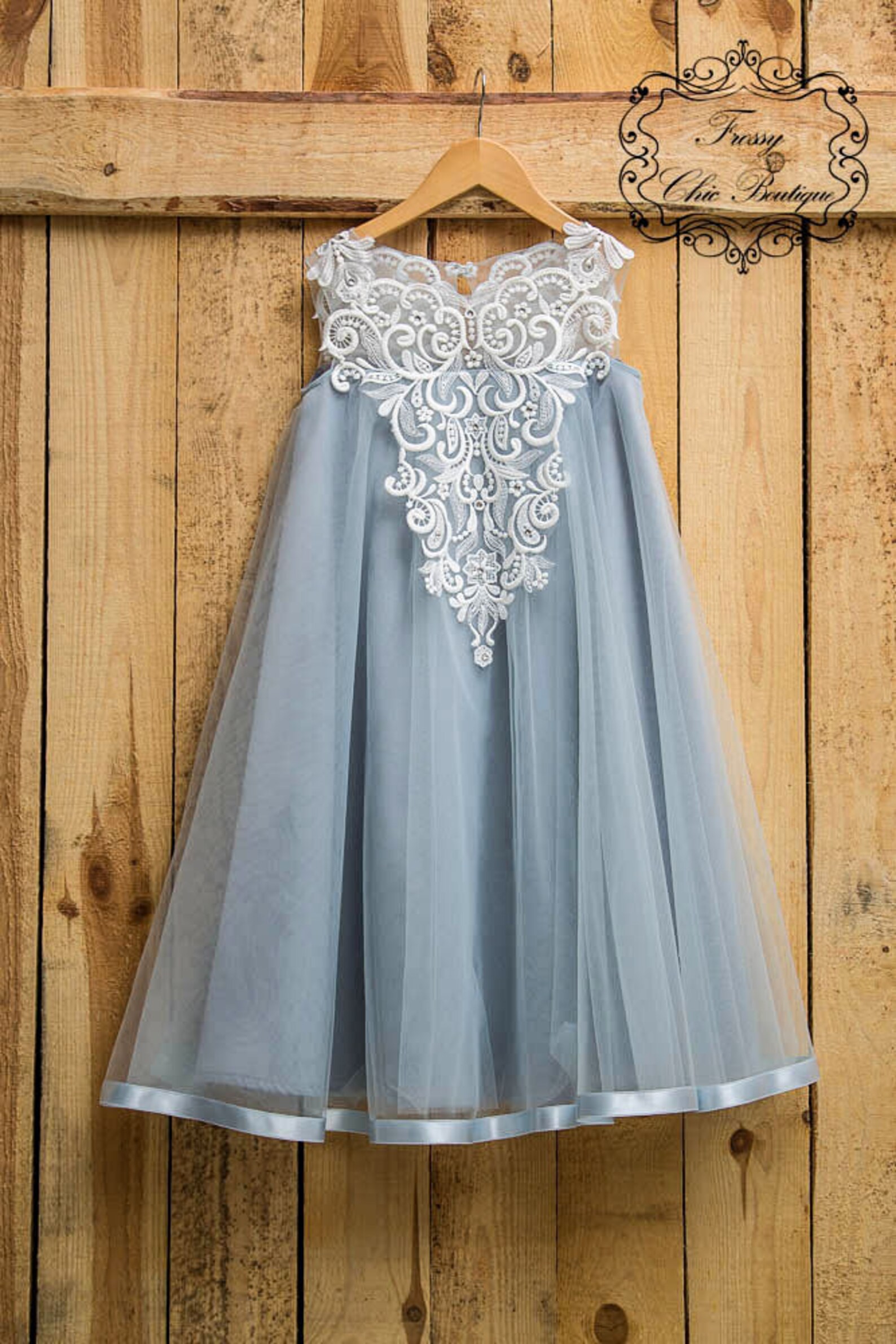 Boho Dusty Blue Flower Girl Dress Rustic Smoke Blue Tulle Etsy