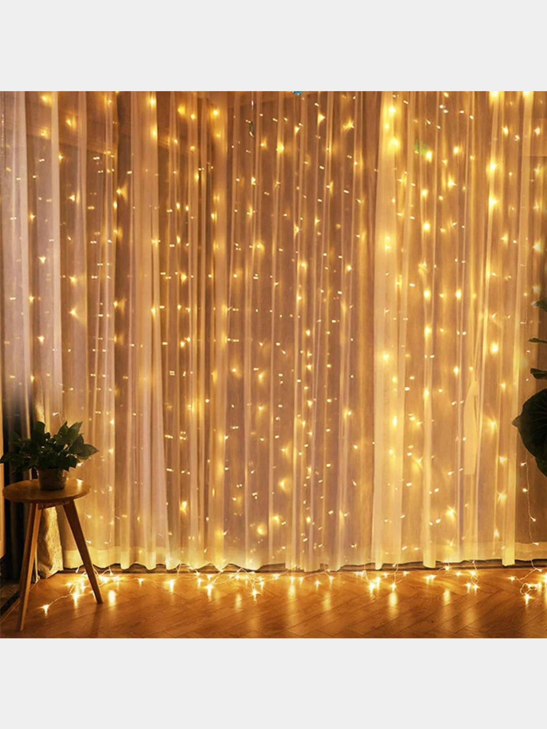 Новогодняя гирлянда шторка 3х2 м, белая и желтая ⚡ Бесплатная доставка завтра Al